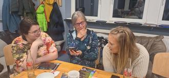 In kleiner Runde wurden 8 Kursteilnehmer:innen unterstützt von 7 jungen Menschen, die ihnen dabei halfen Berührungsängste und Unsicherheiten im Umgang mit den Geräten abzubauen. Gearbeitet wurde generations-übergreifend in 2er- und einem 3er-Team. In der Medienpädagogin Michaela Weiß von Medienleuchtturm hatten alle Tandems zudem eine tolle fachlich versierte Ansprechpartnerin. Sie leitete den mit dem Jugendbahnhofsteam konzipierten Abend an und wusste neben der gelungenen Moderation mit Herz, Verstand und Humor alle Fragen der Kursbesucher:innen rund um die Nutzung und Gerätesicherheit von Handy, Smartphone und Tablet zu beantworten.