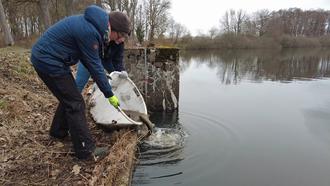 Fische kehren mit ehrenamtlicher Hilfe in den Hausweiher zurück