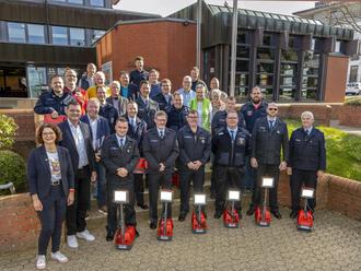„Die Aufgaben der Feuerwehren werden immer vielseitiger und anspruchsvoller. Daher haben sich die SV SparkassenVersicherung und die SV Kommunal entschlossen, die Feuerwehren mit weiteren, hochwertigen Ausrüstungsgegenständen zu unterstützen: tragbaren LED-Beleuchtungssystemen und Wärmebildkameras