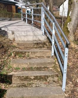 Im Rahmen der Verkehrssicherungspflicht wurden die drei Geländer an der Nauberghalle erneuert. Gleichzeitig wurde auch der Weg von der Nauberghalle zurm „Eichenweg“ teilweise mit neuen Treppenstufen und einem erweiterten Pflaster versehen.