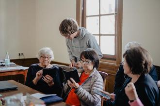 Die Senior*innen waren sehr interessiert an verschiedenen Internetplattformen, um sich z. B. neue Backideen einzuholen und Urlaubsreisen detaillierter planen zu können. Neue Informationen über diverse Messenger Dienste, die mit der Familie und auch „alten“ Bekannten einen stetigen Kontakt ermöglichen, fanden große Beachtung. Da durften natürlich die Videotelefonie, der Gruppenchat und das Broadcast nicht fehlen. Die intensiven Gespräche und der rege Austausch unter den Teilnehmenden sorgten auch immer wieder für eine humorvolle Atmosphäre.