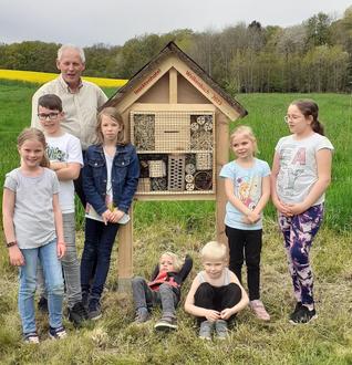 In der vergangenen Woche konnte das fast fertige Insektenhotel am Ortsrand von Welkenbach aufgestellt werden. Jetzt können die Bienen/Insekten fleißig werden. Leider fehlen auf dem Foto ein großer Teil der Kindermannschaft. Allen beteiligten ein herzliches Dankeschön und viel Spaß beim Beobachten der fleißigen Insekten.