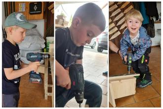 Vergangene Woche haben sich Louis, Til und David in der Erlengasse getroffen. Jeder von ihnen hat einen Nistkasten für die Meisen-Vogelgattung unter Anleitung zusammengebaut. Die Einzelteile waren aus rauem Naturholz vorbereitet, denn dieses ist atmungsaktiv und sorgt für ein gutes Klima im Nest.