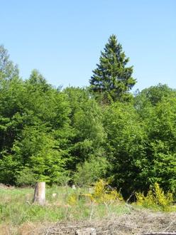 Nicht jede Rotfichte ist Opfer der Trockenheit und des Borkenkäfers geworden. Die abgebildete Fichte steht in Abt. 1b (Gebrannte) und erfreut sich bester Gesundheit.