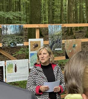 Den zweiten Termin an diesem Tag nahm Katrin Eder im Naturwaldreservat „Nauberg“, unweit der Ortsgemeinde Norken, wahr. Dort wies sie, ebenfalls gemeinsam mit Wolfgang Treis (SGD Nord), durch die symbolische Enthüllung einer Hinweistafel das 425 Hektar umfassende Waldareal offiziell als Naturschutzgebiet aus - der entscheidende positive Beschluss des Verbandsgemeinderates hierzu war bereits im Juli 2023 mehrheitlich gefasst worden.