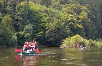 Da einige noch nie mit einem Kanu gefahren waren, brauchte es ein wenig Zeit, bis alle richtig im „flow“ waren. Das stellte sich jedoch sehr bald ein. In Fürfurt, unserem Ziel, angekommen, fuhren wir mit der Lahnbahn zurück zum Parkplatz in Löhnberg. Anschließend ging es nach einem erlebnisreichen Tag auf und an der Lahn zurück ins JuZe um dort den Tag bei einem gemeinsamen Grillen ausklingen lassen.