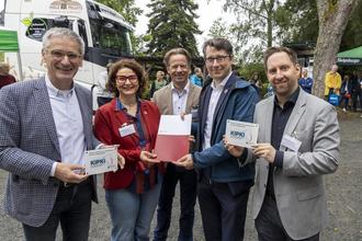 v.l.n.r: Hendrik Hering (Landtagspräsident von Rheinland-Pfalz), Gabriele Greis (Bürgermeisterin der Verbandsgemeinde Hachenburg), Marco Dörner (Erster Beigeordneter der Verbandsgemeinde Hachenburg), Michael Hauer (Staatssekretär im Ministerium für Klimaschutz, Umwelt, Energie und Mobilität Rheinland-Pfalz), Dr. Timo Karl (Nachhaltigkeitskoordinator der Verbandsgemeinde Hachenburg). Foto: Röder-Moldenhauer