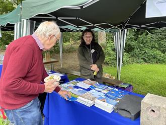 Carola Pfeiffer (NABU Kroppacher Schweiz) präsentiert Informationen zum artgerechten Hausbau.