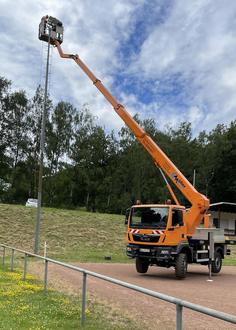 Die Umrüstung der Flutlichtanlage in LED-Leuchtmittel ist in der letzten Woche auf unserem Sportplatz umgesetzt worden. Die neuen Anlagen sind stromsparend und heller als die alten Anlagen.