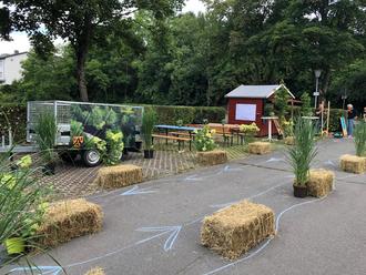Viele fleißige Hände hatten morgens einen ansprechenden Parcours auf der Festmeile geschaffen und während des gesamten Sonntags war unser Stelzenlauf-Stand gut betreut.