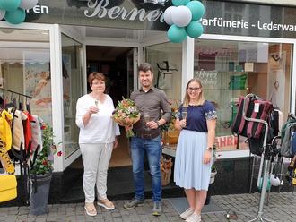 Betritt man das Geschäft, so vernimmt der Besuchende sogleich den lieblichen Duft der zahlreichen Parfüms und Kosmetika renommierter Marken. Aber auch ein reichliches Sortiment an Taschen lassen sich in dem Geschäft finden, denn Ursula Hess möchte mit der Sortimentserweiterung auch weitere Kundengruppen ansprechen. Folgt man dem schmalen Gang in den hinteren Bereich des Raumes, ist es, als wäre die Zeit stehen geblieben. Die silbern glänzenden Metallstangen an der Decke, der nostalgische Stuhl und alte Haarschneidemaschinen erinnern an die Zeit, als das Geschäft überwiegend noch ein Herrensalon war und quasi im Minutentakt Männer nach einem frischen Haarschnitt fragten: „Wenn man nach der Mittagspause das Geschäft öffnete, stand bereits eine Schlange von Herren die Wilhelmstraße hinunter“, erzählt Ursula Hess aus alten Zeiten, als ihr damaliger Vorgesetzter und Gründer des Geschäfts Willi Berner noch die Parfümerie leitete. Willi Berner wurde stets von seinen Mitarbeitern und Mitarbeiterinnen geschätzt. Der Umgang war respektvoll, auf Augenhöhe und freundschaftlich. Es war ein schönes Arbeitsklima, so wie jetzt auch, berichtet eine langjährige Mitarbeiterin der Parfümerie. Die Testamentseröffnung nach dem Tod von Willi Berner ließ Ursula Hess emotional werden, als sie erfuhr, dass sie das Geschäft weiterführen darf. So wurde sie praktisch über Nacht selbstständig. Ihr Leben änderte sich damit schlagartig, aber sie bereut diesen Schritt bis heute nicht: „Für mich gab es damals keinen Zweifel daran, ob ich das Geschäft weiterführe, auch wenn es ein sehr bewegender Moment für mich war.“ Das Bild des Gründers und langjährigen Besitzers der Parfümerie hängt noch heute an der Wand und erinnert die Besucher und Mitarbeiter an die alten Zeiten. Ebenso wie die rückwärtslaufende Uhr, die jeden zum Schmeicheln bringt. Seit nun über 40 Jahren betreut Ursula Hess in der kleinen Parfümerie in der historischen Fußgängerzone ihre Kunden. Besonders der persönliche Kontakt mit den Menschen macht ihr dabei Spaß. Täglich freut sie sich, mit ihren treuen Stammkunden ins Gespräch zu kommen und so die neusten Geschichten rund um Hachenburg zu erfahren. „Ein Service, den man nur noch vor Ort erfahren kann.“, versichert sie. Seit nun 13 Jahren leitet sie selbst die Parfümerie Berner und ist jeden Tag mit Herzblut dabei. „Das 100-jährige Jubiläum eines Geschäfts ist schon eine Hausnummer!“, freut sich Stadtbürgermeister Stefan Leukel, der gemeinsam mit Citymanagerin Timea Zimmer Ursula Hess und ihren Mitarbeiterinnen zu den Festlichkeiten gratuliert. Die Stadt Hachenburg wünscht auch weiterhin alles Gute.