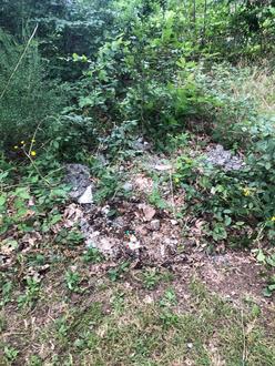 Der Bauschutt musste aufwändig aus hohem Gras- und Gebüsch entfernt werden.