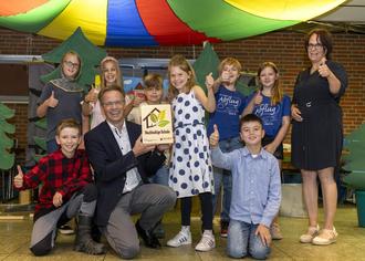 Unsere Schule ist wunderschön mit all den Sachen und wir haben hier auch viel Spaß. Wir danken allen, die uns in unserer Nachhaltigkeit unterstützen: den Eltern, den Kindern, den Teams, den Lehrer*innen und der VG Hachenburg. Nur so ist das möglich und wir sind stolz darauf, etwas für die Umwelt zu tun, denn wir Kinder brauchen die Welt noch lange.