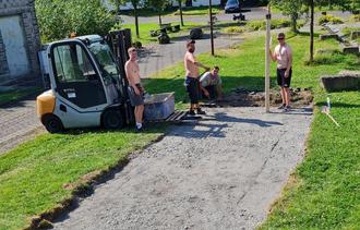 Vergangene Woche sind Hans-Werner Moritz und sein Enkel Henning Nicodemus mit schwerem Gerät angerückt und haben mit dem Erdaushub begonnen. Am Samstag ging es dann weiter mit dem Schichtaufbau für die Boule-Bahn. Hier wurde als erste Schicht Schotter verwendet, der verdichtet wurde um so die Basis für die weiteren Kiesschichten zu bilden. Die Kopfseiten der Spielfläche wurden mit Kopfsteinpflaster hergestellt und seitlich sollen 2 lange Holzstämme die Umrandung bilden. Bei hohen Temperaturen haben neben Henning auch Florian Schmidt, Elias Leyendecker, Jonas Becker und Patrick Wolf sich den schweißtreibenden Arbeiten angenommen. Danke an Euch. Super. Danke auch ans „Wäller Allerlei“ deren gespendete kühle Getränke die herrschende Hitze ein wenig erträglicher machten. In den nächsten Wochen werden die weiteren immer feiner werdenden Schichten eingebracht, sodass bald die neue Boule-Bahn gebührend eingeweiht werden kann.