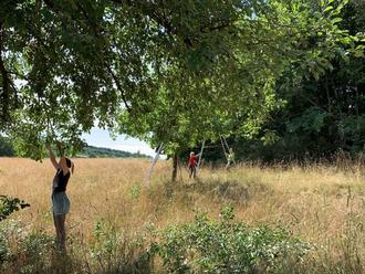 Nach professioneller Anleitung durch einen Profi, pflegen die Freiwilligen eine Streuobstwiese bei Streithausen.