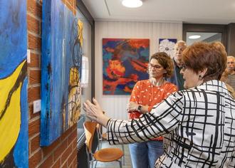 Für die aus Oppenheim stammende, freischaffende Künstlerin seien eigenwillige, teilweise kontrastierende Farbkombinationen sowie diverse Wisch- und Spachteldesigns in Acryl charakteristisch, erklärte Krug während des Rundgangs ihre technische Vorgehensweise. Die Inspiration für Ihre Gemälde gewinne sie aus alltäglichen Erlebnissen, Gefühlsregungen oder gedanklichen Momentaufnahmen. Das Ergebnis entstehe immer spontan, ohne vorherige Planung.