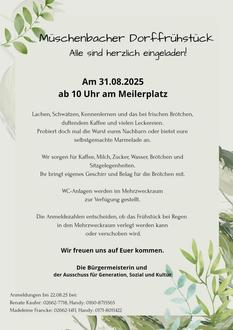 Müschenbacher aufgepasst, unser erstes gemeinsames Dorffrühstück steht an:
