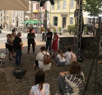 Die kostenlose Stadtführung stieß auf großes Interesse und dank der ehrenamtlichen Dolmetscher*innen konnte die Sprachbarriere aufgehoben werden. Neben Tipps, um sich in Hachenburg schnell zurecht zu finden, gab es Einblicke in die Historie der Löwenstadt. Die Teilnehmenden hörten gebannt zu, stellten Zwischenfragen und diskutierten untereinander. Zusätzlich bestand die Möglichkeit eigenständig besondere Orte und Sehenswürdigkeiten der Stadt ausfindig zu machen, um das zweisprachige Stadt-Quiz zu lösen – ein besonderes Highlight für die jungen Gäste, die sich direkt in eine spannende Entdeckungsreise stürzten.