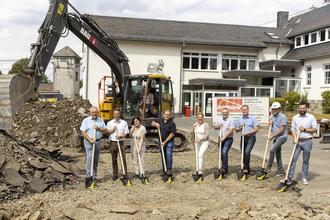 Bei bestem Sommerwetter strahlten die mit dem weiter voranschreitenden Projekt des zweizügigen, ganztagsgerechten Ausbaus der Schule befassten Verantwortlichen aus Schule, Verwaltung, Architekturbüro, Ortsgemeinde und der ausführenden Firma mit der Sonne um die Wette. Nach der Fertigstellung des neuen Schulhof- und Spielgeländes erfolgte nunmehr der Startschuss zum Gebäudeneubau auf dem alten Schulhof. Zur Erfüllung des benötigten Raumprogramms wird ein Flachdachgebäude mit vier Klassenräumen, dem für die Ganztagsschule geforderten Spieleraum und Ruheraum sowie Toilettenanlagen und Lehrmittelraum errichtet. Ein eigener Raum für die Betreuende Grundschule findet im modernen Anbau außerdem Platz. Neben einem Aufzug wird aus Nachhaltigkeitsgründen eine Photovoltaikanlage auf dem Dach zukünftig das Schulgebäude mit Strom versorgen. Im Zuge des Neubaus wird auch die bereits über 30 Jahre alte Ölheizung im Altgebäude demontiert und durch eine moderne Pelletheizung ersetzt.