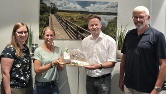 Im Rahmen einer kleinen Feierstunde gratulierten Erster Beigeordneter Marco Dörner, Büroleiter Rainer Schütz und stellvertretende Personalratsvorsitzende Jacqueline Velten zu diesem besonderen Doppelanlass.