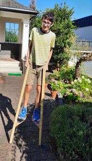 Einige Wochen ist es her, seit die Besucher des VG-Festes in Hachenburg sich im Stelzenlauf messen konnten. Unsere Gemeinde leistete damit einen attraktiven Beitrag zu diesem Fest. Der Heimborner Stand lockte viele Besucher/innen an. Auch die Heimborner, die den ganzen Tag unseren Stand betreuten, hatten viel Spaß. Die Laufzeiten wurden, falls gewünscht, festgehalten und so konnte unsere Ortsbürgermeisterin dieser Tage Jonas Bossert als dem schnellsten Stelzenläufer gratulieren und seine Siegesprämie überreichen. Diese bestand nicht etwa in einer Geldsumme, sondern der glückliche Gewinner konnte ein Paar selbst gebaute, stabile Stelzen in Empfang nehmen.
