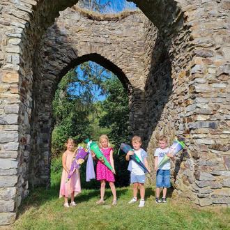 Stolz haben die Erstklässler Matias Silea, Milo Kreckel, Annika Stöcker, Milan Szesni, Fine Goedert und Elsa Zimmer ihre Schultüten präsentiert und vom Bürgermeister gab es noch eine Steinebacher Trinkflasche dazu. Die Gemeinde wünscht euch viel Erfolg und dass ihr immer mit Freude in die Schule geht.