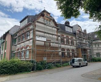 Besonders sichtbar sind die Arbeiten an der Grundschule „Am Schloss“: Der Altbau erhielt einen neuen Anstrich, Fenster und Dachrinnen wurden überholt. Zugleich laufen die Vorbereitungen für eine zukunftsfähige und sichere Stromversorgung: Mit einem eigenen Trafo wird die Schule ab den Herbstferien unabhängiger und effizienter.