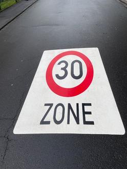 In der Wilhelmstraße wurden ‘Zone 30’ Markierungen auf den Straßenbelag aufgebracht.
