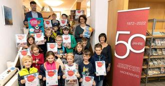Der Lesesommer 2022 endete am 11. September. In den Wochen davor hatten sich die teilnehmenden Kinder und Jugendlichen durch sage und schreibe insgesamt 1.974 Bücher mit 213.121 Seiten geschmökert. Rechtzeitig zur Feier des großen Büchereijubiläums am 17. September waren alle Lesesommer-Clubkarten ausgewertet und die Urkunden geschrieben. Die Feierstunde und der Tag der offenen Tür der Stadtbücherei, mit vielen Aktionen für Groß und Klein, lockten weit über zweihundert Besucher in die Bücherei. Die Lesekönige unter ihnen durften dann auch gleich ihre Lesesommerurkunden stolz entgegennehmen. So konnten zwei schöne Ereignisse miteinander verbunden werden.
