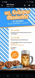 Unser Oktoberfest findet am Samstag, d. 07. Oktober 2023, an der Grillhütte statt.