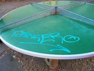 Am Dienstag, den 09. Januar 2024 musste die Schulleitung der Grundschule am Schloss in Hachenburg feststellen, dass die Tischtennisplatte auf dem Schulhof verschandelt wurde.