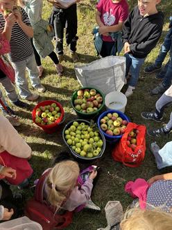 Am Freitag, den 12. September 2025, trafen sich 31 Kinder der Vorschule bis zur 2. Klasse sowie 7 Mütter an der Sporthalle, um gemeinsam einen abwechslungsreichen Nachmittag zum Thema „Apfel“ zu gestalten.