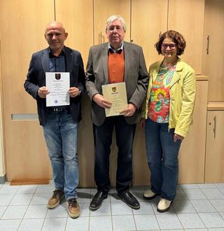 Viele anerkennende Worte fand er auch für seinen Vorgänger Michael Birk, dem Bürgermeisterin Gabriele Greis für 13 Jahre Ortsbürgermeistertätigkeit ein großes Dankeschön der Verbandsgemeinde aussprach. Als symbolisches Geschenk überreichte sie eine silberne 20-Euro-Gedenkmünze der Serie „Prägende Frauen“, die im Jahr 2025 an Elly Heuss-Knapp und ihr Wirken für das Müttergenesungswerk erinnert.