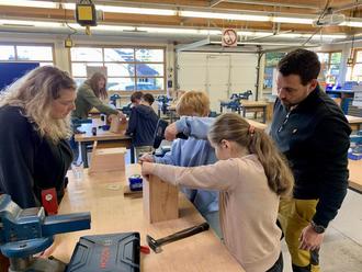 In dem Workshop lernten die Kinder nicht nur, wie man die Einzelteile des Bausatzes zu einem fertigen Nistkasten verschraubt, sondern auch welche zukünftigen „Bewohner“ dort einziehen werden und wie die Kleinmeisen vor potentiellen Fressfeinden geschützt sind.