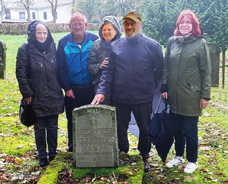 Besuch aus den USA in Hachenburg! Dr. George Brown und seine Frau Barbara, aus Seattle besuchten, gemeinsam mit Freunden aus den Niederlanden, Hachenburg. Dabei ging es Dr. Brown, einem Enkel von Max Weinberg, darum, etwas über seine Vorfahren und das Leben von Juden in Hachenburg zu erfahren. Das ehemalige Haus Max Weinberg am Neumarkt wurde besichtigt. Begleitet wurde die kleine Gruppe von den GWH-Vorstandsmitgliedern Regina Klinkhammer, Sabine Herrmann und dem engagierten Mitglied Achim Wiczinski. Johannes Kempf, Co-Autor des Buches "Zachor" und GWH-Mitglied, gestaltete die eine sehr persönliche und informative Führung, die am Judenfriedhof begann. Am Parkplatz neben dem Beustchen Haus gedachte man weiterer Verwandter aus der Weinberg Familie, danach ging es zum Gedenkstein am Vogtshof. Dort berichteten die GWH-Mitglieder vom jährlichen Gedenken der Stadt Hachenburg am 9. November. Beim Besuch weiterer Stolpersteine, erwähnte Regina Klinkhammer Ruth Marianne Schönfeld und Bernhard Löb besonders, die ihr Leben als Kind bzw. Jugendliche im KZ verloren. Zum Schluss waren sich alle einig: Kommunikation und Austausch sind wichtig, dass sich das nicht wiederholt.