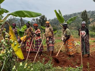 Diese wachsen im Schutz von ebenfalls neu gepflanzten schattenspendenden und erosionsmindernden Bäumen und Sträuchern und tragen spürbar zur Verbesserung der zunehmend überlebensnotwendigen landwirtschaftlichen Produktion in Ruanda bei.