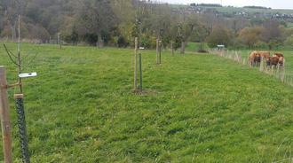 Mit dem Ziel der Erhaltung alter Obstsorten als Kulturerbe sowie dem Erhalt und der Förderung der biologischen Vielfalt kaufte der jetzige Eigentümer die Fläche. Auf dieser vormals von Rindern beweideten Wiese wurde stattdessen aufwendig eine Streuobstwiesenfläche angelegt. Durch diese Aufwertung der Fläche sollte ein zusätzlicher Lebensraum für zahlreiche Pflanzen- und Tierarten erhalten werden. Wildkräuter und Bienenweiden ergänzen die Anpflanzung.