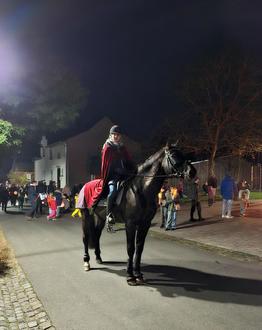 Angeführt von Sankt Martin hoch zu Ross startete der Umzug mit vielen bunten Laternen und mit Musik aus der Box durchs Dorf. Am Backesplatz wartete anschließend schon ein loderndes Martinsfeuer. In diesem Jahr verteilte Sankt Martin höchstpersönlich die Brezel und Schokoladentafeln an die vielen Kinder.