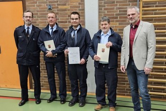 (v.l.n.r.) Jörg Heinze Wehrführer, Thorsten Karstens, Enrico Pleines, Oliver Zerres, Torsten Schneider Ortsbürgermeister