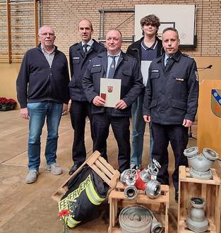 v.l.n.r. Ortsbürgermeister Peter Enders, stellv. Wehrführer Andreas Wengenroth, Stefan Triebel, Peter Haubrich, Wehrführer Daniel Hahmann