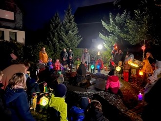 Schön war er wieder, unser St. Martinsumzug am 11.11.2023. Nach einem kleinen Rollenspiel am Schulhof führte St. Martin mit seinem Pferd den Zug an. Krankheitsbedingt war dieses Jahr leider keine musikalische Zugbegleitung dabei, was die Stimmung aber nicht beeinträchtigte. Die Zugstrecke wurde durch die Beleuchtung an den einzelnen Häuser schön gestaltet. Herzlichen Dank den Anwohnern dafür. Am Bürgerhaus wurden dann einige Lieder gesunden, ebenso am Dorfbrunnen. Dort versammelten sich die Kinder um den Brunnen herum und sagen Martinslieder, schön war es, dies anzusehen. Zurück am Feuerwehrhaus wurde es am Martinsfeuer schnell gemütlich und die Kinder nahmen diesmal den Weckmann mit Freude in Empfang.
