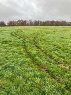 Leider wurden in der Nacht von Freitag, 17.11.23 auf Samstag, den 18.11.2023 wieder mit wahrscheinlich 2 Fahrzeugen Runden auf durchweichter Wiese oben am Tal (Ecke Steinweg) gedreht.