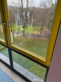 Unsere Kita wurde in der letzten Woche mit rohen Eiern beworfen. Da dies vom Bolzplatz aus hoch an ein Fenster im Personalraum geschah, war dies bewusst gewählt und es war sicherlich eine größere Anstrengung.