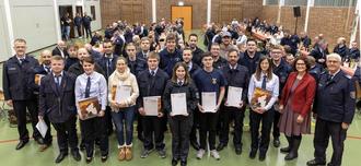Im Anschluss an die Ehrungen der verdienten Kameradinnen und Kameraden freute sich Bürgermeisterin Greis besonders, auch in diesem Jahr wieder zahlreiche junge Leute für den Wehrdienst verpflichten zu können. Ihnen wünschte sie ein gutes Ankommen in der Feuerwehrfamilie der Verbandsgemeinde sowie viel Erfolg und vor allem Freude und Erfüllung durch das Ehrenamt.