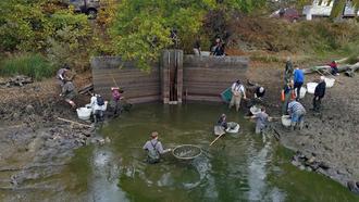 Zahlreiche Ehrenamtliche helfen mit beim Abfischen von zwei Westerwälder Weihern