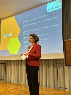 Umso mehr freue sich Greis, mit Annika von Kiedrowski eine Fachkraft gewonnen zu haben, welche sich nun dieser Querschnittsaufgaben annehmen und den regionalen Betrieben als zentrale Ansprechpartnerin zur Verfügung stehen werde. In Folge führte Annika von Kiedrowski durch die Veranstaltung, stellte geplante Projekte vor und übernahm die Leitung des fachlichen Diskurses. Abschließend nutzten die Unternehmerinnen und Unternehmer die Möglichkeit eines offenen Gespräches zur Erläuterung der jeweiligen Erwartungshaltungen an die Kommune.