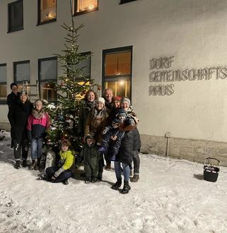 Festlich leuchtet der schön geschmückte Weihnachtsbaum am Dorfgemeinschaftshaus. Danke an alle die gebastelt, geschmückt und geholfen haben. Wir die kleinen und großen Weihnachtswichtel wünschen euch allen eine besinnliche Advents- und Weihnachtszeit.
