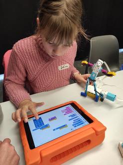 Am Samstag, 02. Dezember erweckten elf Kids im Alter von 10-12 Jahren unter der Anleitung von Michaela Weiß von Medien-Leuchtturm Lego–Roboter zum „Leben“. In Zweier-Teams bauten die teilnehmenden Kinder Lego-Roboter mit Motorantrieben, Sensoren, Licht- und Tonsignalen. Zuerst wurde ein Miniatur-Computer, das Herzstück des Roboters, mit einem Tablet verbunden und aktiviert. Mit Hilfe einer Software ließen sich dann unterschiedlichste Vorlagen und Bauanleitungen aufrufen. Anhand dieser bauten die Kinder verschieden Lego-Roboter zusammen. Richtig spannend allerdings wurde es danach. Denn mit den Tablets ließen sich die gebauten Teile dann sehr vielfältig programmieren. So konnten mit kleinen Motoren Räder angetrieben werden, die die kleinen Roboter in vorprogrammierter Weise fahren, hüpfen oder sogar tanzen ließen. Verschiedene Sensoren konnten so programmiert werden, dass die Roboter auf ihre Umgebung reagieren konnten, wenn z.B. ein Hindernis im Weg war oder eine bestimmte Farbe im Sichtfeld erschien. Leuchten konnten so programmiert werden, dass Schriftzüge erschienen. Zu alledem konnten die kleinen Geräte Töne von sich geben und mit dem Tablet zusammen konnten sogar Aktivitäten der Roboter mit Musik unterlegt werden. Einige Kinder wurden schnell kreativ und entwickelten fantastische Eigenkonstruktionen und einige Ideen ließen tatsächlich sich so umsetzen, dass sie auch wie geplant funktionierten. Wie im Flug waren die vier Stunden zwar vergangen, aber es war ein tolles Angebot von Medien-Leuchtturm, indem spielerisch und mit viel Spaß Grundlagen der Robotik und Programmierung gelernt werden konnten.