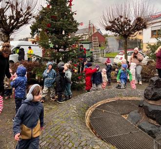 Unsere Kindergartenkinder haben am 28.11.2024 trotz nicht allzu guter Witterung unseren Weihnachtsbaum am Brunnen wunderschön geschmückt. Es wurde wieder selbstgebastelter Baumschmuck mitgebracht und noch vorhandener Schmuck angebracht. Am Schluss wurden rund um den Brunnen Weihnachtslieder gesungen und etwas Warmes getrunken. Gestärkt mit Äpfeln, Mandarinen und Bananen ging es dann wieder zurück zur Kita. Herzlichen Dank an unsere Kindergartenkinder und dem Erzieherteam, ohne euch hätten wir keinen so wunderschönen Weihnachtsbaum in der Mitte des Dorfes.