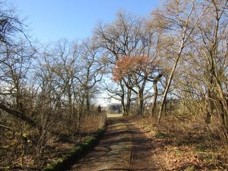 Nicht von Menschenhand, aber durch diese begünstigt, haben sich am Großstück, entlang eines gemeindlichen Wirtschaftsweges, einige Eichen prächtig entwickeln können.